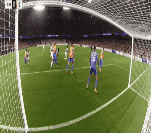 第43分钟,贝林厄姆在禁区线附近连续盘带,突然起脚,皮球直钻死角,皇马半场结束就已经3-0领先了。